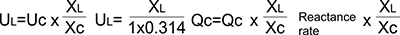 (Capacitor capacity: Qc-reactor capacity; Qw-reactance rate HV;?UL-inductance; L-reactor current; I-Phase voltage of capacitor;?Uc-Phase inductive reactance; XL-capacitive reactance: Xc)