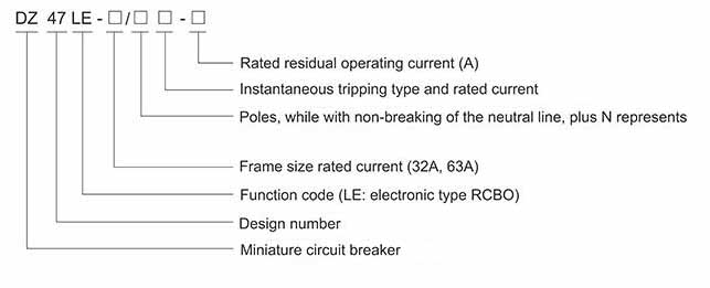 A. Model .Name; eg: DZ47LE-32,Leakage circuit breaker