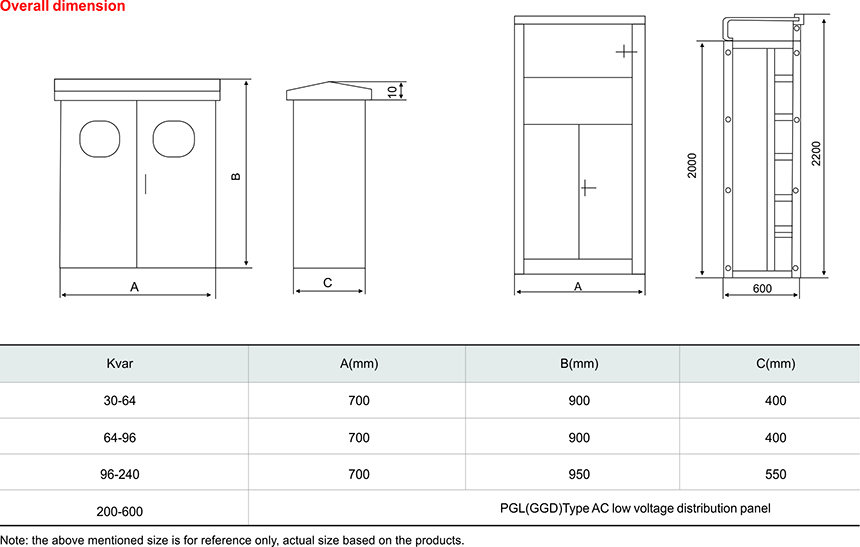 Rated output: 30、36、40、48、56、60、64、72、84、90、96、120、160、200、250、300、350、400、500、600kvar