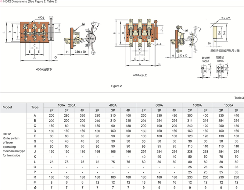 HD knife switch and knife-shaped transfer switch (hereinafter referred to as the switch) ?is applicable for the complete set of distribution unit with the AC frequency of 50Hz, rated current up to 380V and the rated current up to 3000A, to turn on and off the AC and DC circuit in an infrequent manner or serve as isolation switch