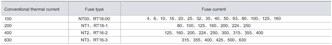 Rated working current: 380V: 100A, 200A, 400A, 630A;
