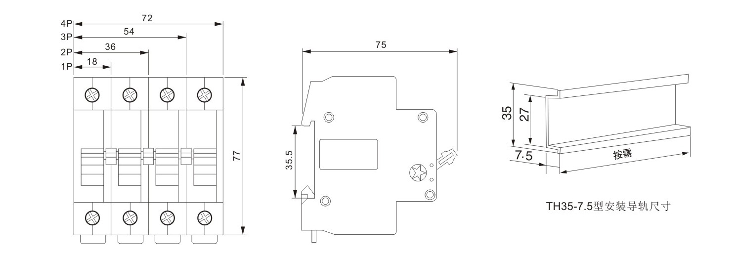 安裝方式:采用TH35-7.5型鋼安裝軌安裝,其安裝面與垂直面的傾斜度不超過(guò)5°。