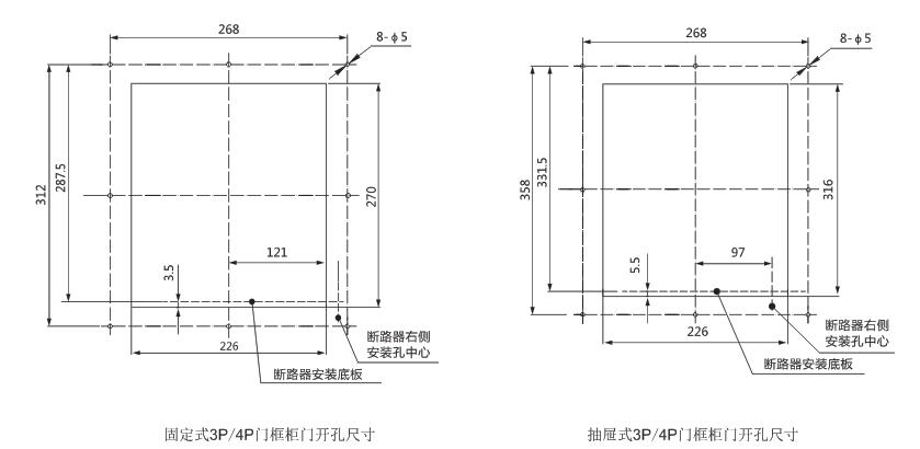 抽屜式、固定式斷路器的門柜開孔尺寸見(jiàn)圖