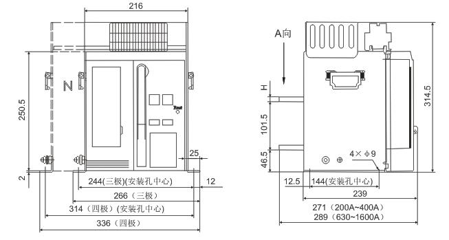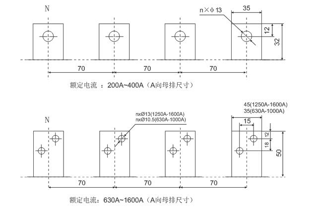 固定式斷路器的安裝尺寸和外形尺寸見(jiàn)圖