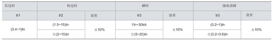 b) 2L2(基本保護(hù)):過(guò)載長(zhǎng)延時(shí)+短路瞬時(shí);2L3(選擇性保護(hù)): 過(guò)載長(zhǎng)延時(shí)+短路短延時(shí)(定時(shí)限)+短路瞬時(shí);2L4(選擇性保護(hù)+接地保護(hù)): 過(guò)載長(zhǎng)延時(shí)+短路短延時(shí)(定時(shí)限)+短路瞬時(shí)+接地保護(hù)(電流矢量和方式)。