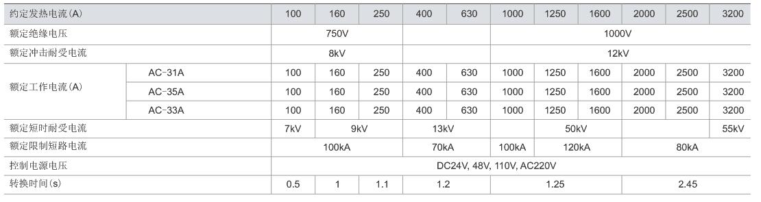 額定工作電流(Ie):10~3200A;