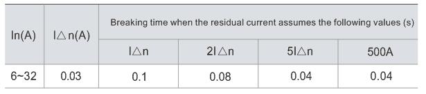 Graded as follows according to the rated current In: 6A, 10A, 16A, 20A, 25A, 32A;