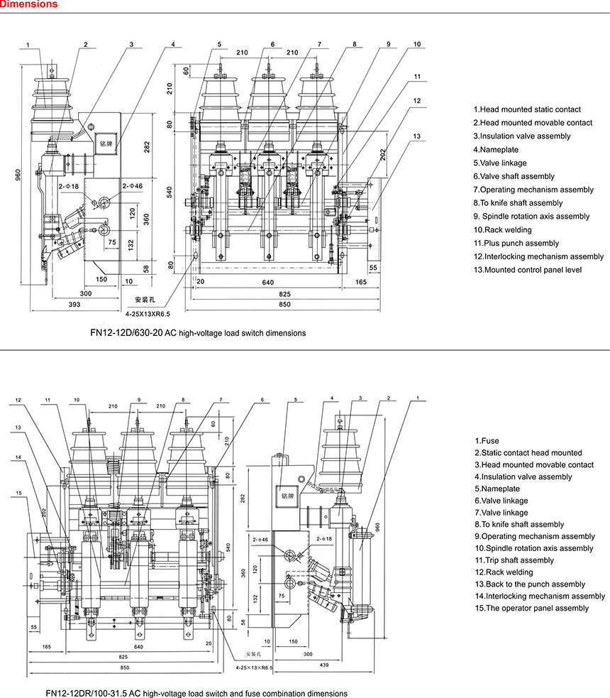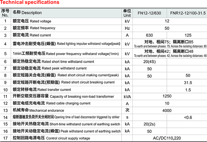 FN12-12D and FN12-12DR load break switch and fuse switch is a three phase H.V. switch equipment of 12KV, 50Hz for breaking or closing load current, no-load transformer and cable charging current and closing short-circuit current. The fuse switch can break short circuit current, the load switch with earth switch can withstand short-circuit current. It is especially suitable for ring main network or terminal power supply substation, to control load and protect from short circuit.