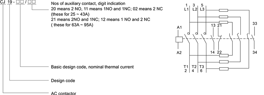 Cj19 25~43 contactor has 2 pairs of auxiliary contacts, CJ19 63~95 contactors have 3 pairs of auxiliary contacts, the terminals have provided insulating cover for safety, coil terminals have been marked clearly. CJ19 25~43 can be mounted by screw or by 35mm railway, a dismount able square blank card in cover is provided for spare when required to print something as user. CJ19 63~170 can be mounted on 35 or 75 mm railway.
