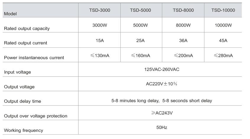TSD series voltage regulator, is a new product of low energy Power consumption, over voltage, under voltage, overcurrent delay protection.