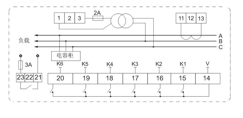 并通過(guò)設(shè)定參數(shù)中電容容量與無(wú)功匹配運(yùn)算自動(dòng)控制電容器投切。