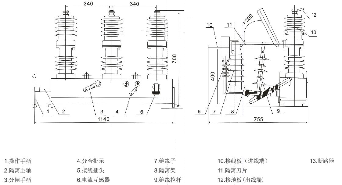 本斷路器具有體積小、重量輕、防凝露、免維護(hù)等特點(diǎn),能適應(yīng)較惡劣的氣候條件和污穢環(huán)境。