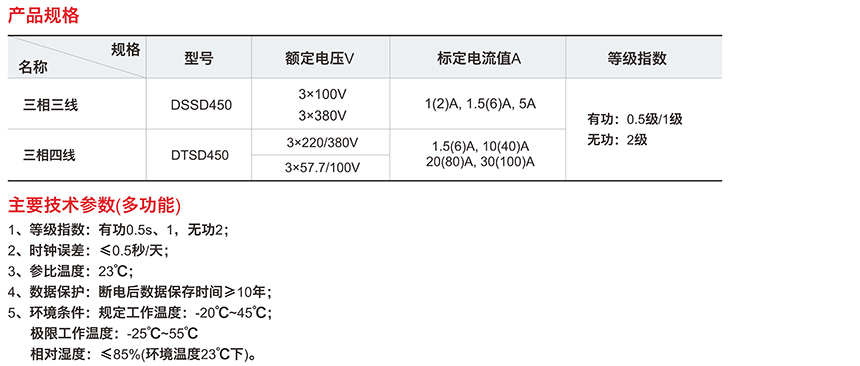 DSSD450系列三相電子式多功能電能表,是我公司最新推出的可實(shí)現(xiàn)有功和無功電能計(jì)量、復(fù)費(fèi)率等多種功能的新一代產(chǎn)品,本產(chǎn)品采用模塊化設(shè)計(jì)、多種功能可自由組合,以適應(yīng)廣大用戶對(duì)電度表的不同需求。本產(chǎn)品各項(xiàng)性能指標(biāo)符合DL/T 614-1997《多功能電度表》、DL/T 645-1997《多功能電度表通訊規(guī)約》GB/T 17215.321-2008標(biāo)準(zhǔn)中對(duì)三相電子式多功能電能表的全部技術(shù)要求。