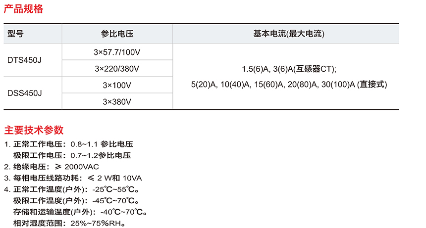 DTS450J、DSS450J型三相電子式有功電能表(液晶顯示帶RS485通訊表)是為方便電力部門(mén)或用戶監(jiān)控電網(wǎng)質(zhì)量而設(shè)計(jì)開(kāi)發(fā)的電能表。具有較高的準(zhǔn)確度和可靠性。本電能表采用國(guó)際先進(jìn)的超低功耗大規(guī)模集成電路技術(shù)及SMT工藝制造。電子式三相有功電能表供參比頻率為50Hz的三相電網(wǎng)中精確計(jì)量有功電能。該表型根據(jù)國(guó)家標(biāo)準(zhǔn)GB/T17215-2002《1級(jí)和2級(jí)靜止式交流有功電度表》設(shè)計(jì),通訊規(guī)約符合DL/T645-1997《多功能表通訊規(guī)約》。