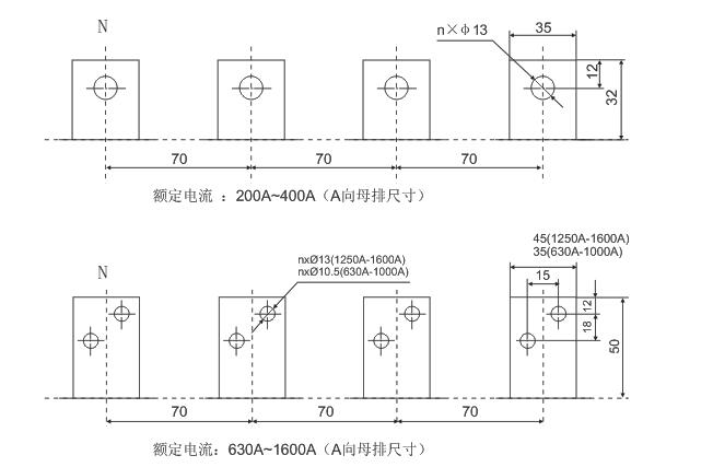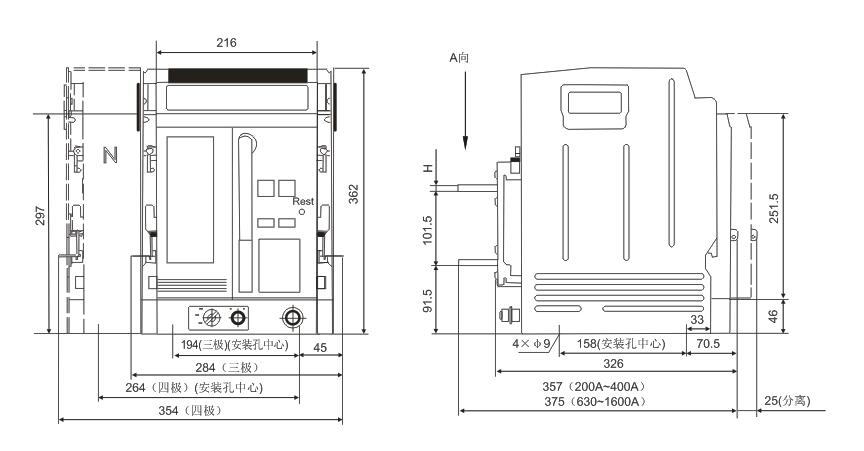 固定式斷路器的安裝尺寸和外形尺寸見(jiàn)圖