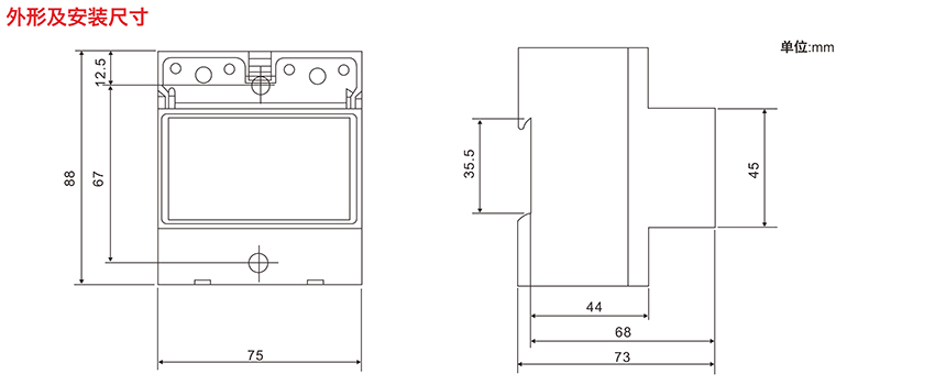 1、可選35mm DIN導(dǎo)軌或板前安裝。