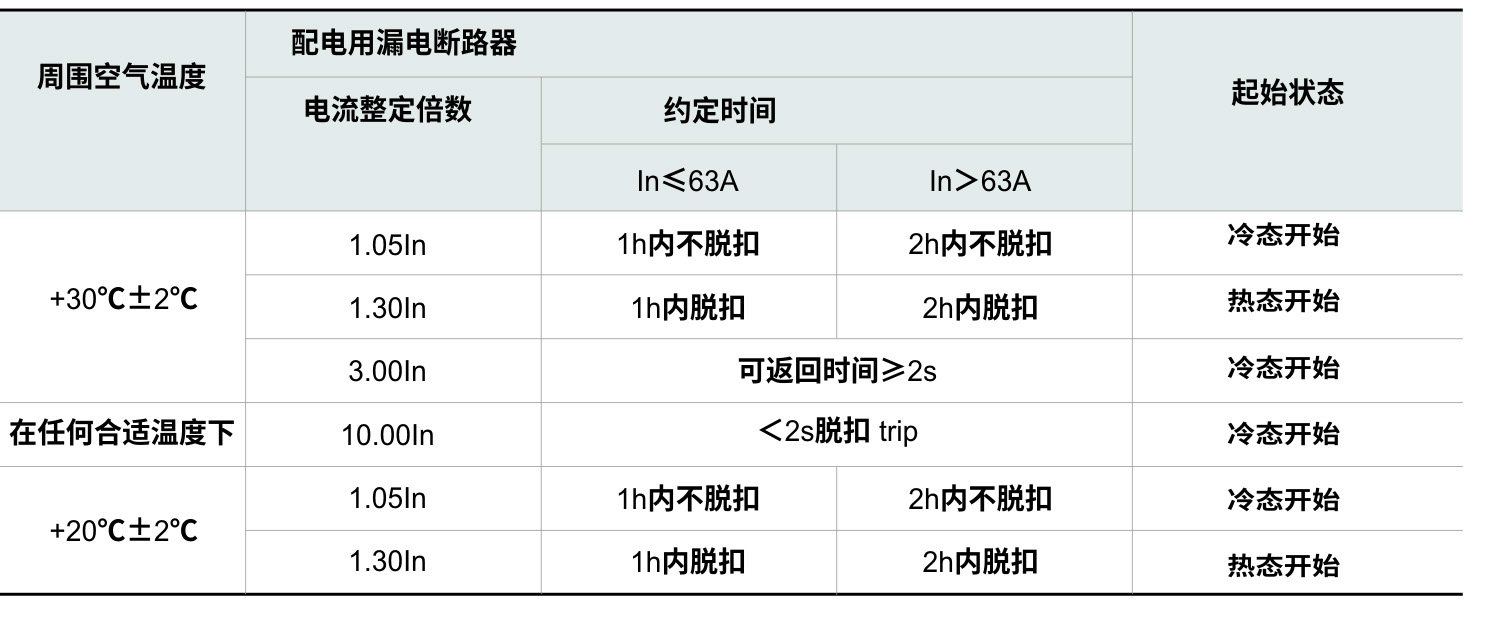 配電保護(hù)用漏電斷路器過電流脫扣器保護(hù)特性
