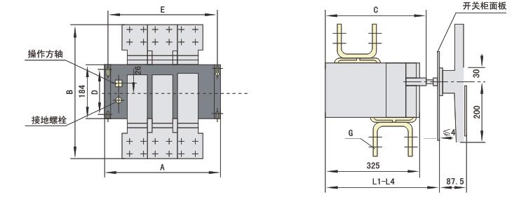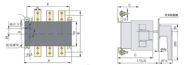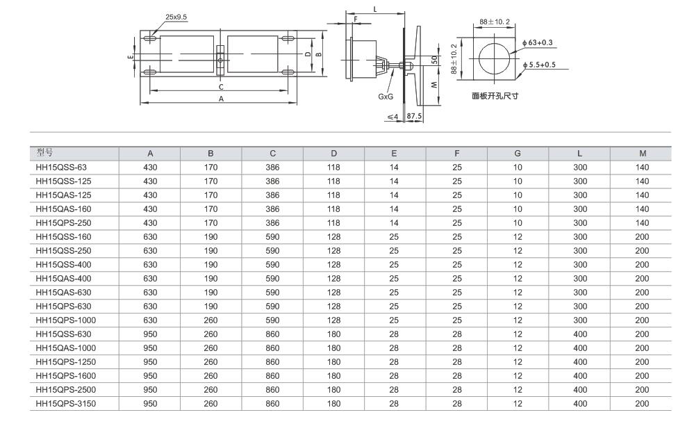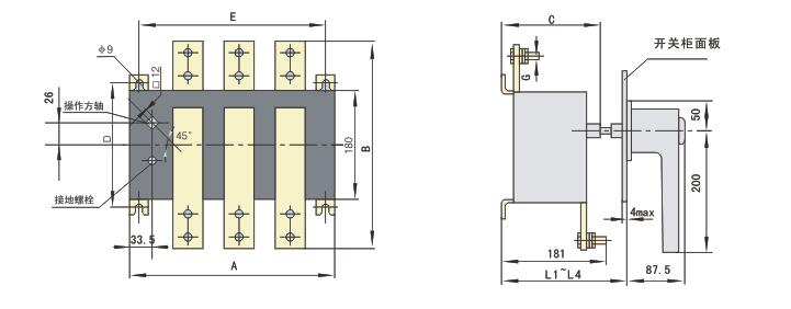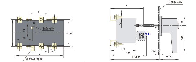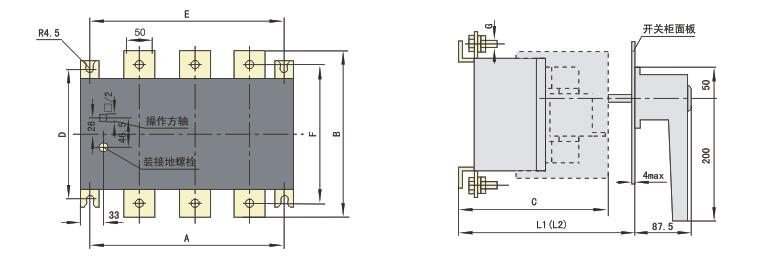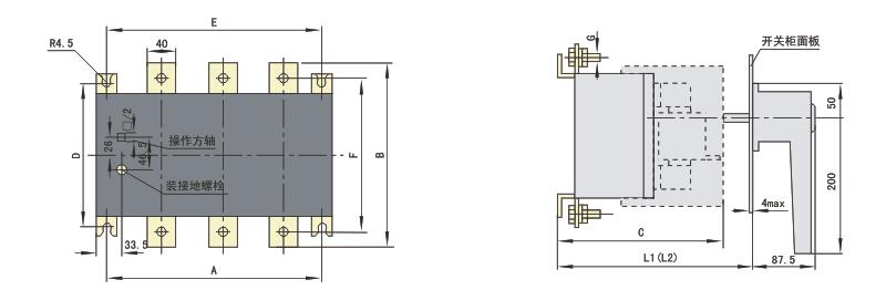 面板開孔是為了固定操作手柄底座之用,其尺寸與對(duì)應(yīng)開關(guān)規(guī)格關(guān)系