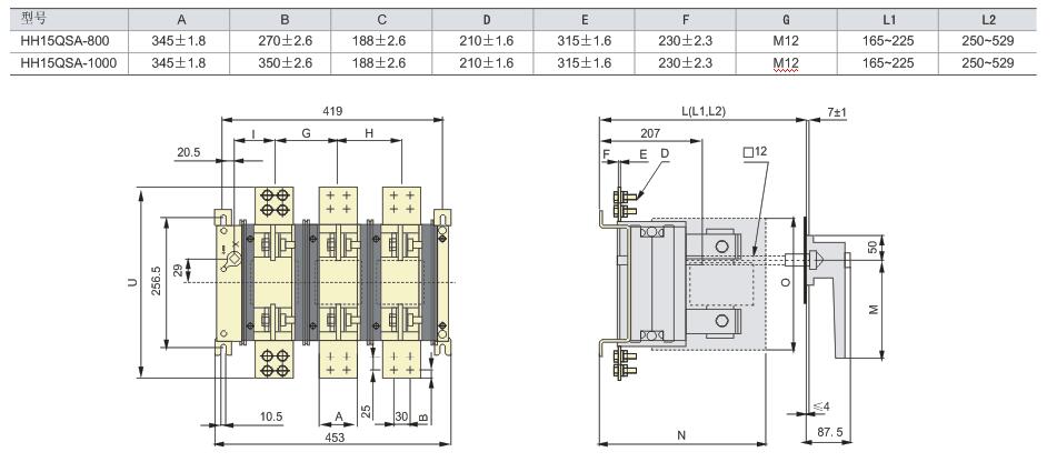 HH15QSA-160~400, QA-400~630, QP-400~1000,四極外形尺寸?
